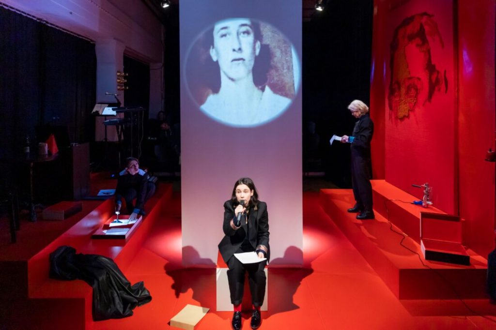 Wir waren mit T. und S. dort. Schauspieler*innen und Sänger*innen nähern sich der Neuköllner*in Olga Benario. Die heute keine/r mehr kennt, obwohl eine Galerie in NK nach ihr benannt wurde. Sie war Kämpferin und Agentenin im Auftrag des Weltkommunismus. Beim Versuch die Revolution nach Brasilien zu bringen, wurde sie gefasst, ins faschistische Deutschland ausgliefert und dort ermordet. Das Stück zeigte Ausschnitte aus ihrem Leben. Dazu wurden vor allem Briefe genutzt.
