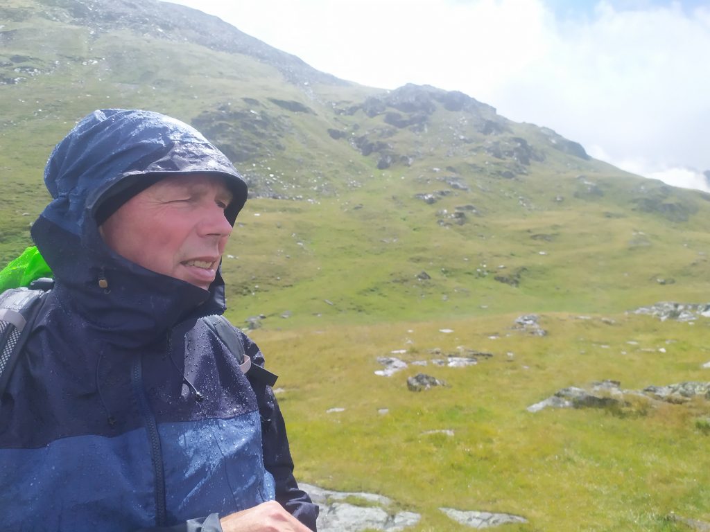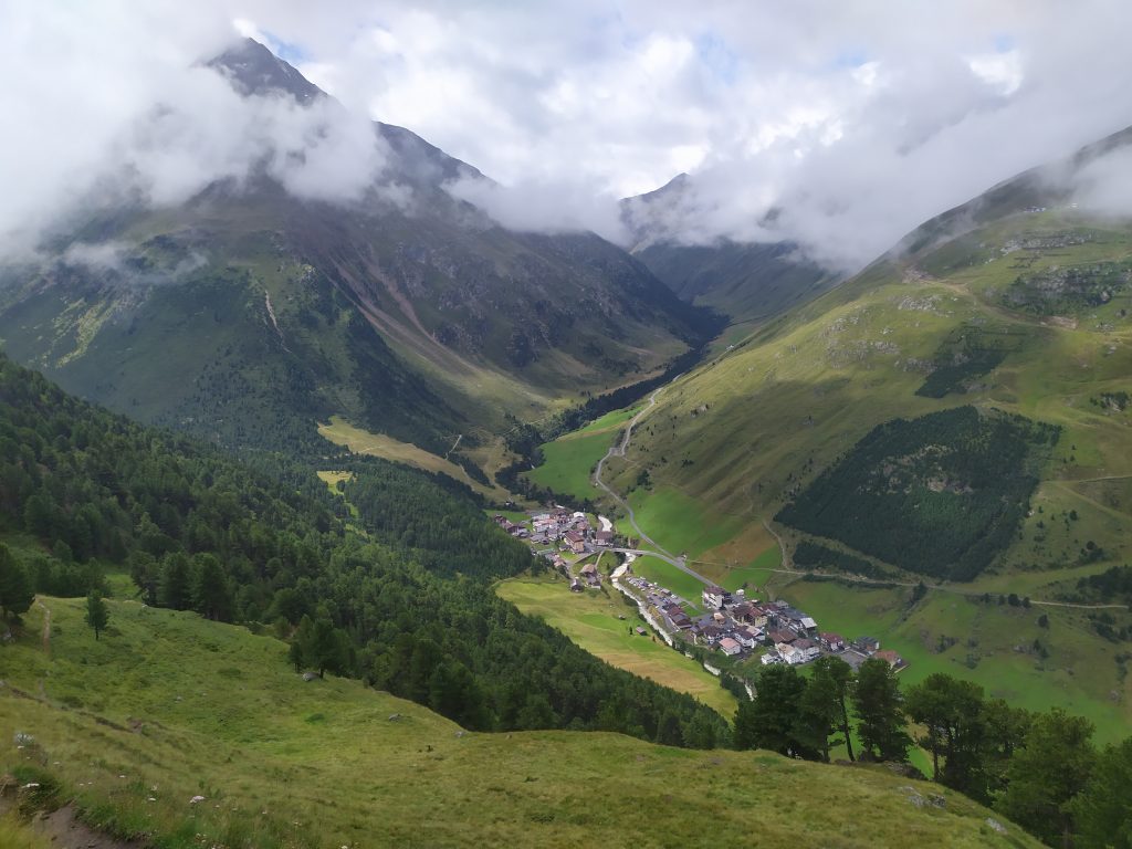 Das Wetter sah gar nicht so schlecht aus. Nach 400m Höhenmetern wollten wir eigentlich unsere geplante Kurztour verlängern. Aber nach weiteren 100m erwischte und heftiger Schneefall. Wir drehten um, gingen aber noch im nun heftigeren regen zum Mutbichel (2361m). Runter gings steil bergab. Die Sonne kam heraus.