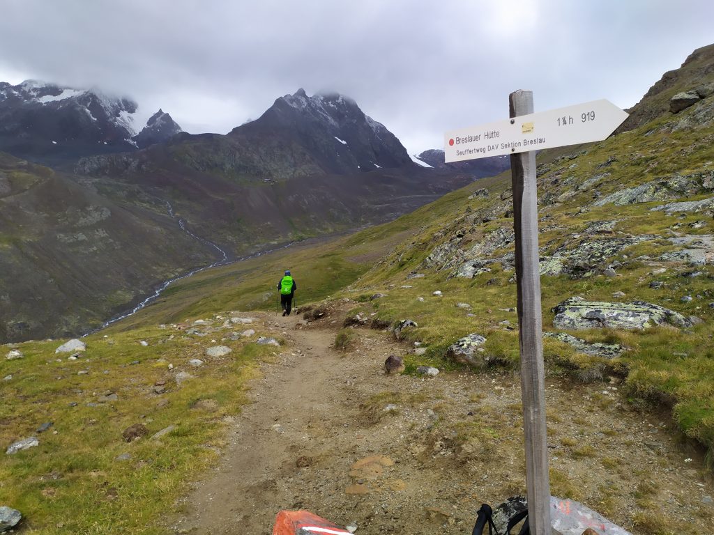 Dauerregen! Allerdings nur schwach. Die Wolken hingen tief, manchmal auch Schnee. Die Wanderung war wieder ein Panoramweg, wovon wir nichts hatte. Zunächst immer leicht bergab, mussten wir zur Vernagthütte ca. 250m ansteigen. Dort hatten wir einen kleinen Imbiss. Der Hüttenwrt hat den Ofen angezündet. Zurück gings den gleichen Weg. Nach 6 Stunden waren wir wieder in der Breslauer Hütte.