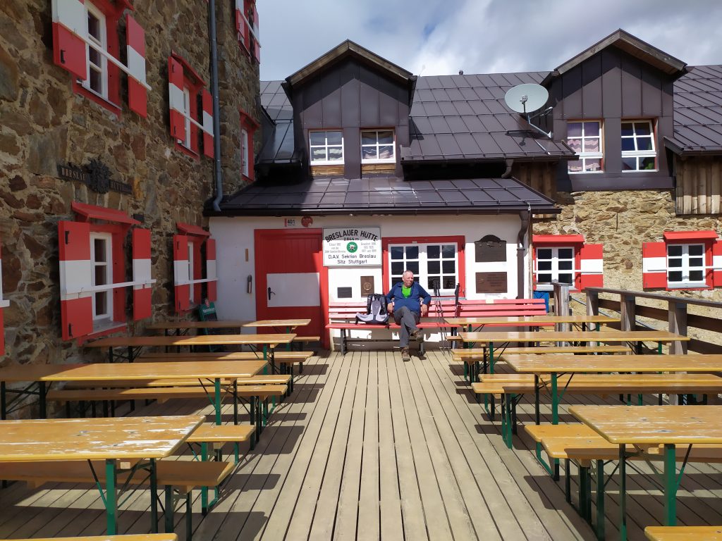 Der 500m Anstieg zur Breslauer Hütte war mit vollem bauch etwas anstrengend. Oben konnten wir aber zum ersten Mal vor der Hütte in der Sonne sitzen. Der kalte Wind trieb uns dann aber doch wieder rein.