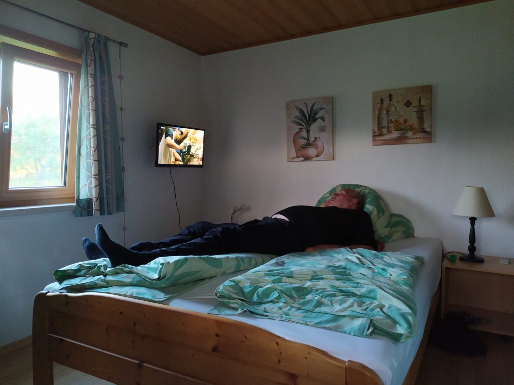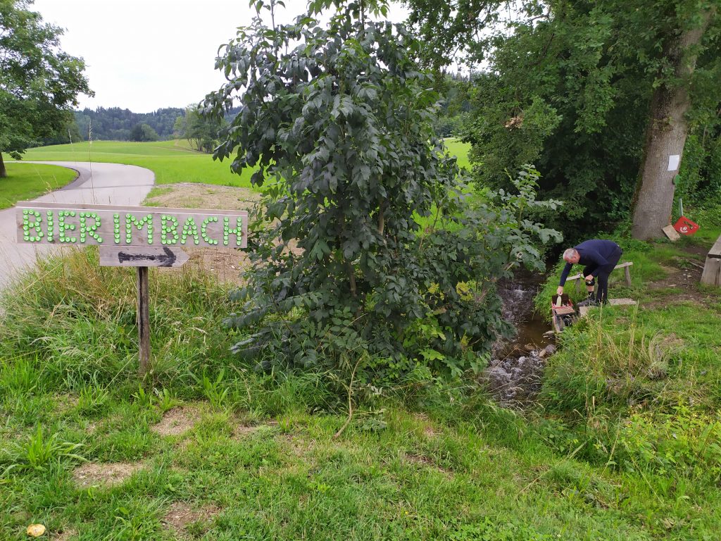 Viele Steigungen 3-4 mal geschoben. Die erste Pause machten wir am „Bier im Bach“. Zweite Pause i n Wangen beim Bäcker. Wir waren ca. 16 Uhr nach 7 1/2 Stunden in Isny und mussten dann noch einmal hoch nach Biesen (3km entfernt). Überteuertes Quartier – sehr kleines Zimmer ohne Kochmöglichkeiten oder Frühstück. Aber ruhig.