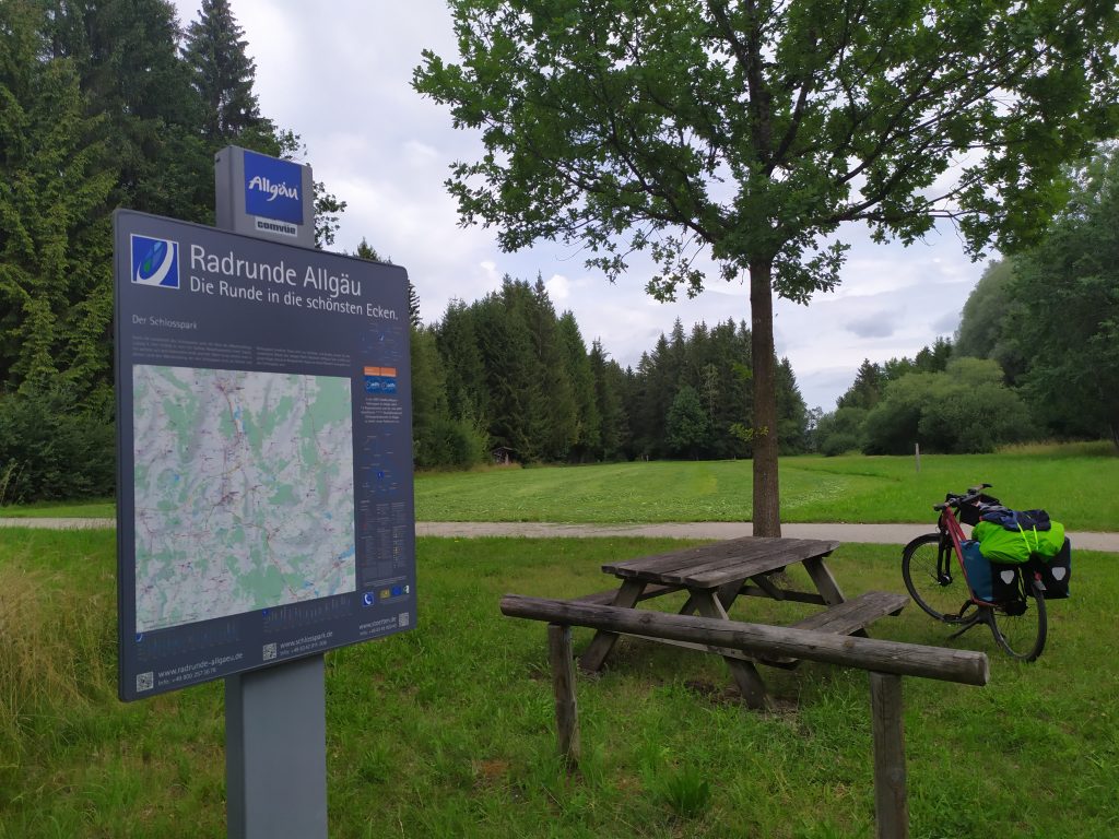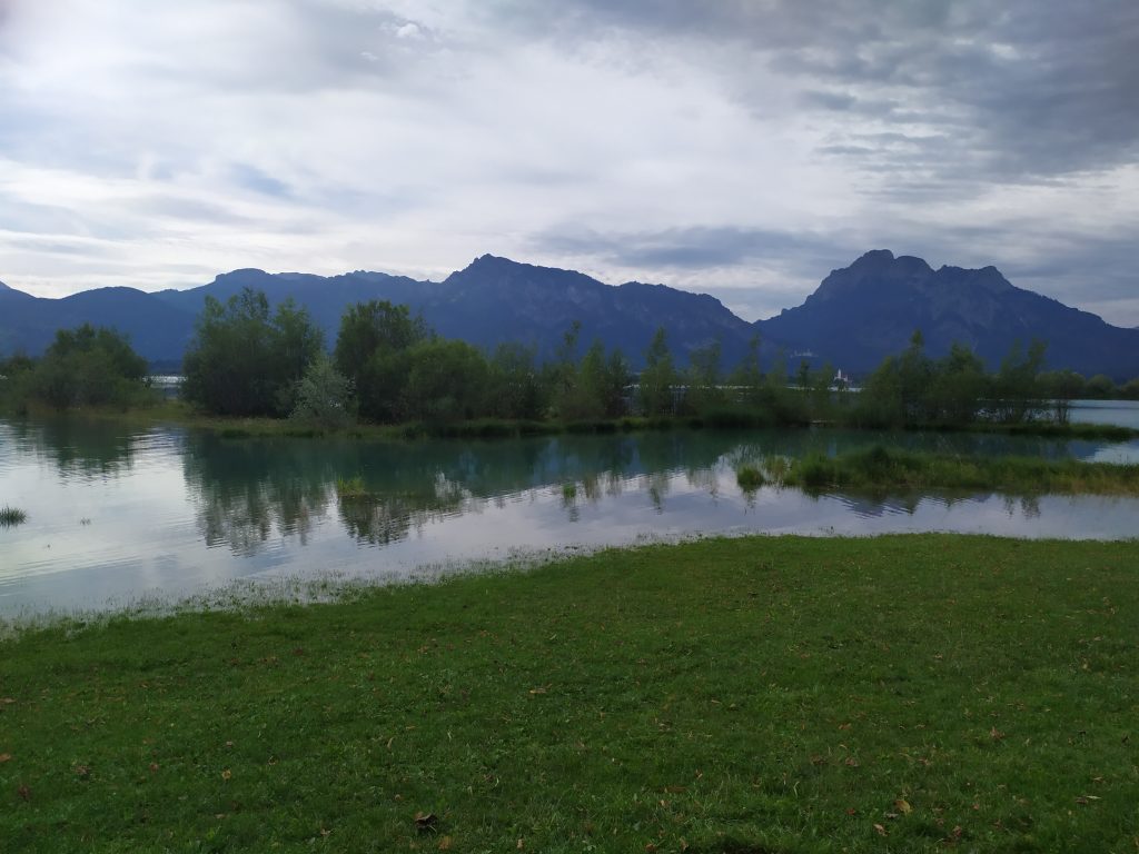 Unsere letzte Etappe war eine schöne und wenig anstrengende Tour. Wir sind sie sehr flott gefahren mit einem 16er Schnitt. Anfangs radelten wir direkt am Ufer des Alpensees entlang. Später führte uns die Tour auf einer alten Bahntrasse durch sehr ländliche Gegend. In Marktoberdorf haben wir nach einem kleinen Vorratseinkauf eine Bäckerpause eingelegt. Der Zug von Türkheim nach München war sehr voll und wir hatten eine pöbelige Diskussion mit zwei alten weißen Männern. In München haben wir die Räder und unsere Fahrradtaschen zu Pat. und Dan. gebracht, Freunden von Tanja. Mit der U-Bahn gings zum Hotel Leonardo. Etwas zu schick für uns…wir genossen die Dusche, suchten uns einen Imbiss zum Abendbrot und ein Brauhaus zum Bier trinken. Schon nach einem Bier holten wir uns Spätibiere und setzten uns auf unseren Hotelbalkon.