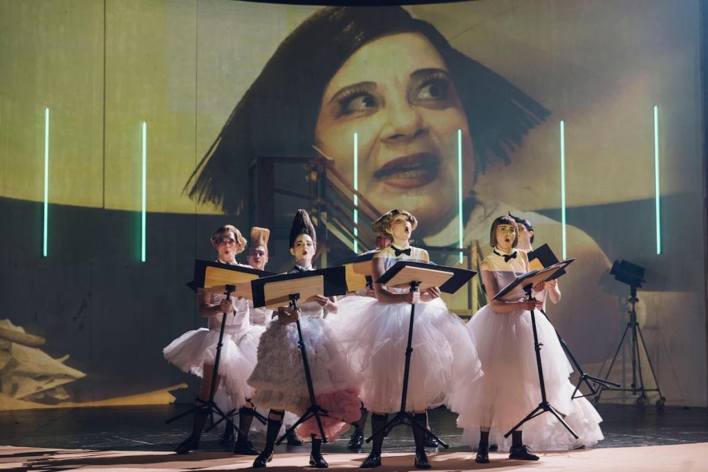 Ursonate [Wir spielen, bis uns der Tod abholt] Eine dadaistische Sprechoper VON Kurt Schwitters REGIE Claudia Bauer KOMPOSITION Peer Baierlein BÜHNE Patricia Talacko KOSTÜME Vanessa Rust VIDEO Jan Isaak Voges LICHT Cornelia Gloth DRAMATURGIE Daniel Richter MIT Mareike Beykirch, Moritz Kienemann, Jens Koch, Vanessa Loibl, Janek Maudrich, Lenz Moretti, Mathilda Switala, Anita Vulesica DIRIGENT Yannick Wittmann MUSIKERINNEN Maria Schneider, Lih Qun Wong LIVE-KAMERA Dorian Sorg