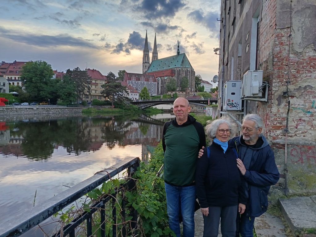 Unsere Anreise war etwas holprig. Am Alex sind wir nicht in den Zug gekommen, weil der Halt nur eine Minute dauerte und wir nicht rechtzeitig an der richtigen Tür waren. In Cottbus kamen wir nicht mehr in den Zug, weil er überfüllt war. B. und J. stiegen gegen 15 Uhr in Rietschen aus und radelten die 40 km bis Görlitz. 15 km an der Landstraße auf separatem Radweg, 15 km durch den Wald und die restlichen 10 km auf dem ehemaligen Bahndamm der Kreisbahn Görlitz. Das letzte Stück war am schönsten. Es tröpfelte zwischendurch mal, wir brauchten unsere Regensachen jedoch nicht. Auf dem Untermarkt in Görlitz genehmigten wir uns ein Ankommensbier. U. und M. trafen wir in einer Brauereikneipe. Görlitz scheint auch eine längere Reise wert zu sein…