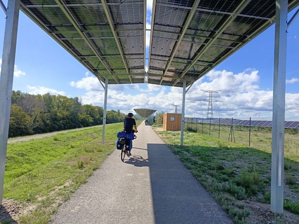 Später auf dem Deich war der Radweg einige hundert Meter mit Solarpanels überdacht. So etwas sollte es öfter geben.