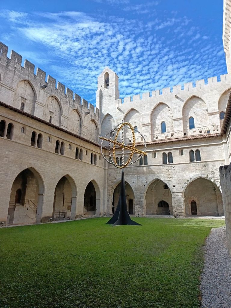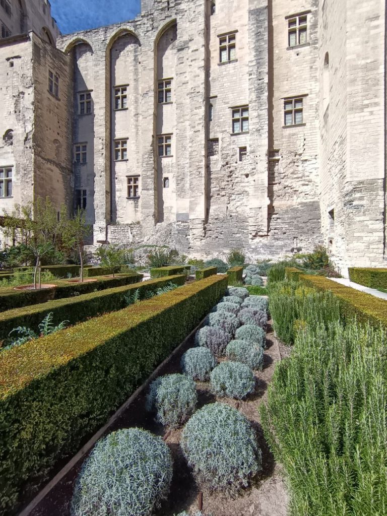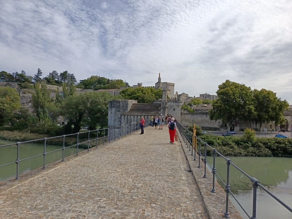 Gegen10.30 Uhr waren wir soweit erwärmt, dass wir uns zum Papstpalast aufmachen konnten. Ein verbilligtes Rentnerinnenticket war schnell erstanden. Der riesige Palast ist wirklich beeindruckend. Hohe gewaltige repräsentative Räume. Im 14. Jahrhundert haben hier die Päbste regiert. Weil inzwischen die Inneneinrichtung fehlt, haben alle Besucher*innen ein Historiepad bekommen. Modernste Technik, die uns zeigte, wie die Räume vor fast 1000 Jahren aussahen und wozu sie dienten. Zuerst waren wir frustriert weil es nicht funktionierte, aber später haben wir uns doch damit angefreundet.