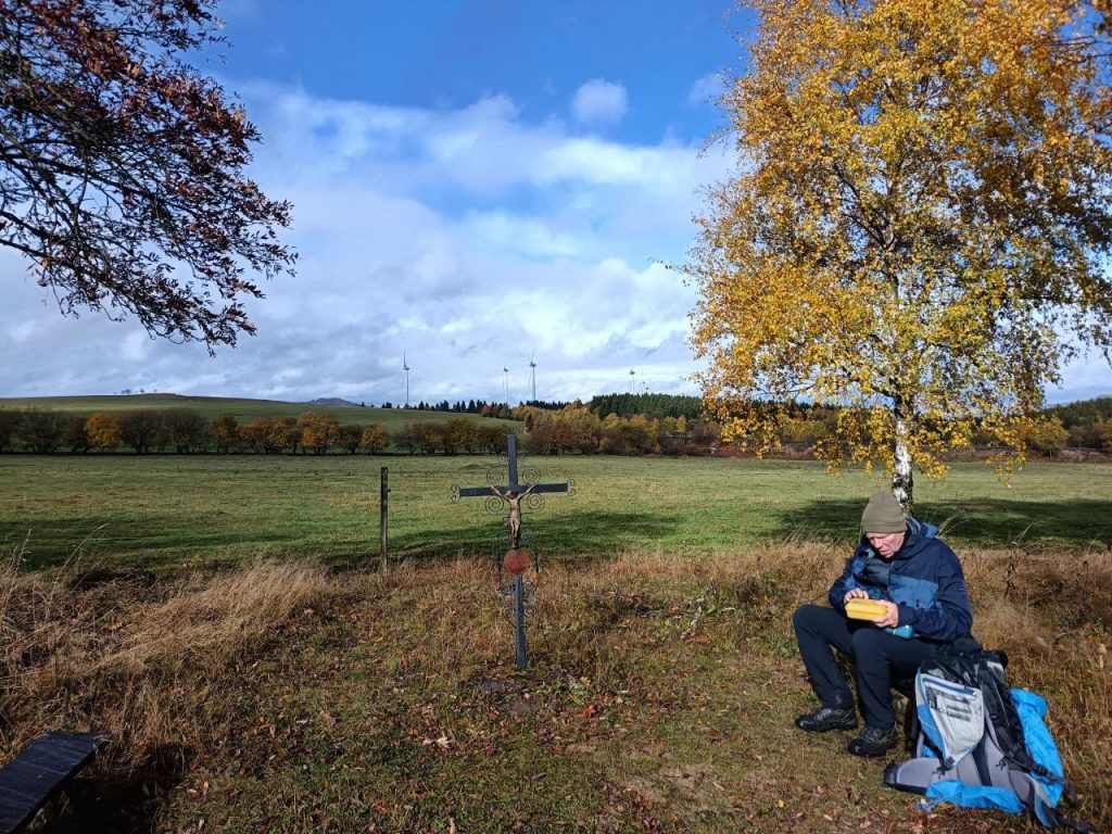 Die Sonne schien, als wir nach einem üppigen Frühstück um halb zehn aufbrachen. Das blieb leider nicht so. Nieselregen und Wind und trockene Abschnitte wechselten sich ab. Wir liefen 15 km ohne Pause. Dann kam endlich ein Spot mit Bank und kurz darauf in Medenec eine Kneipe mit Gulaschsuppe und pancakes. Von hier waren es nur noch 7 km bis zu unserem Ziel: Kovarska. Insgesamt waren wir 22,3 km und 350 Höhenmeter unterwegs. Hat gut funktioniert. Wir hängen nicht komplett in den Seilen. Zum Abendbrot fanden wir eine Kneipe unweit unserer Pension. Es gab Langos und Hirschgulasch mit Knödel.