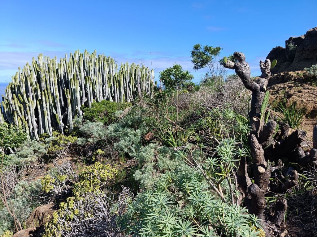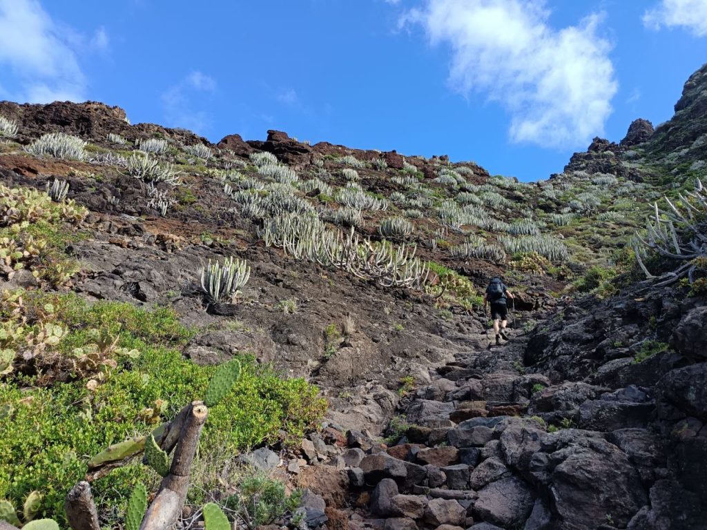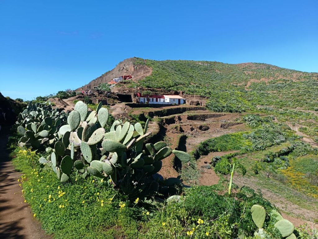 Heute ging es wieder tief rein und hoch ins Anaga Gebirge, das uns umgibt. Ziel war ein klitzekleines Dorf, wo die Häuser in den Felsen hineingebaut wurden und ringsherum Terrassen Felder sind. Der Aufstieg (800hm) war anstrengend und dauerte fast 3 Stunden.