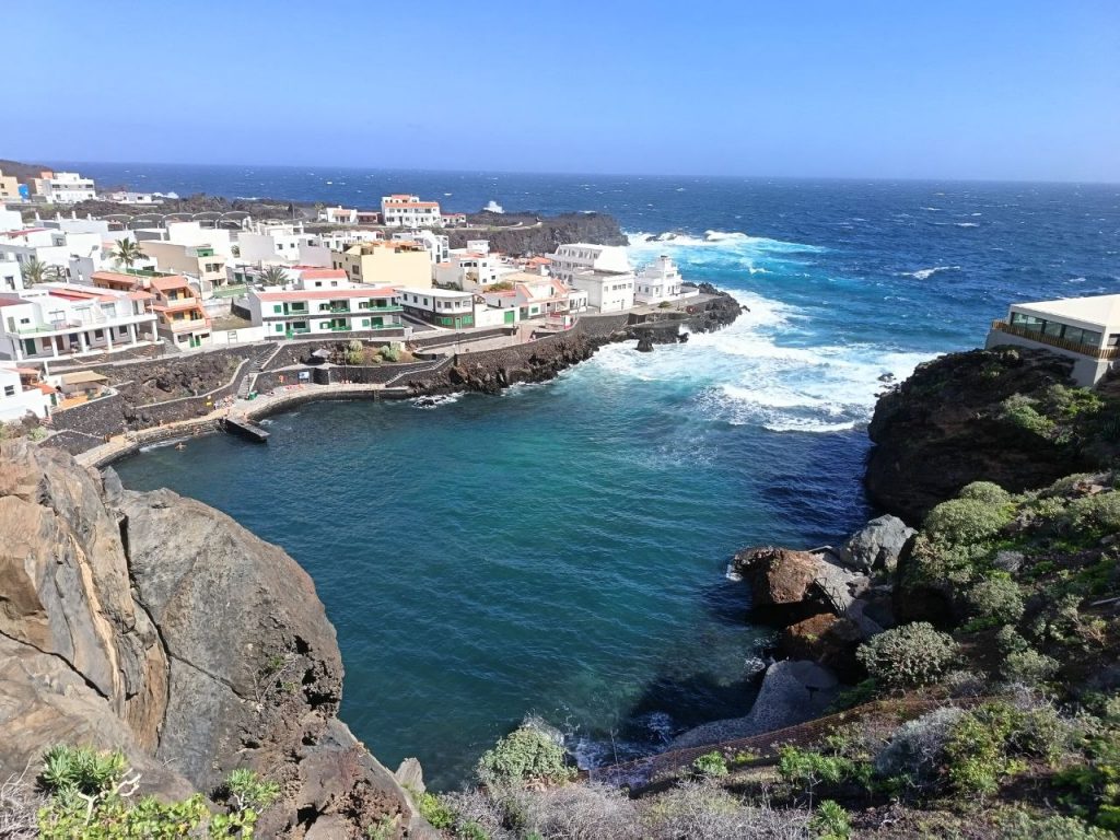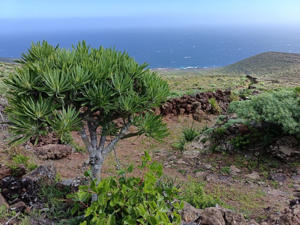 Heute waren wir wieder „richtig“ wandern. Es ging zunächst 600 hm runter zum Flughafen von El Hierro, der direkt an der Küste liegt. Nur 7 Flugzeuge starten und landen hier am Tag. Wir liefen weiter nach Tamaduste, vorbei an einer Meerwasserentsalzungsanlage und machten am großen Meerwasserschwimmbecken in Tamaduste Pause.