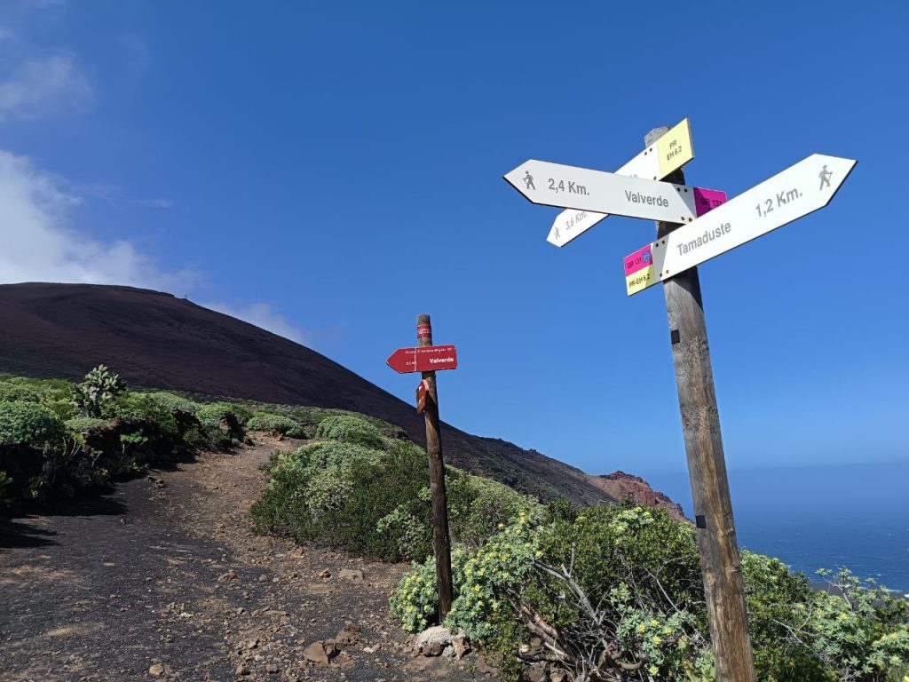 Es waren nur wenige Menschen im Wasser und die Wellen kamen ordentlich rein. Wir hatten auch keine Lust zu baden. Von hier ging es ziemlich steil 600 hm bergauf, teilweise durch lavasplit („lapili“), das sich sehr schwer lief. Wetter war hervorragend, aber sehr windig. In Valverde kamen wir genau bei den Quesadillas an und konnten nicht vorbei gehen. Köstlich!