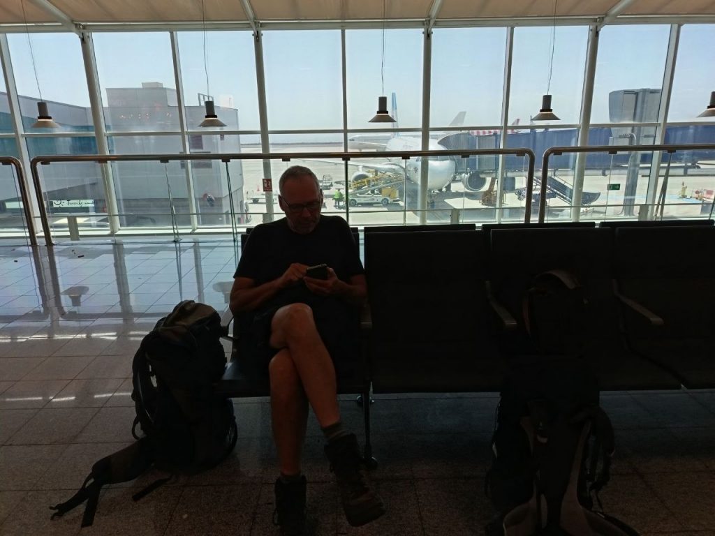 Am Dienstag frühstückten wir in einer Bäckerei und fuhren mit dem Bus zum Flughafen Teneriffa Süd. Wir waren drei Stunden vor unserem Abflug dort. Sicherheitskontrolle dauerte nur 20 Minuten. Dann saßen wir lange rum, aßen und tranken noch was. Als wir zum Gate kamen, war es dort ganz leer. Das wunderte uns, weil es doch gerade mal 10 Minuten geöffnet war. Das Flugzeug war schon voll. Es führte kein Weg hinein. Es stand dort wenige Meter vor uns aber sie ließen uns nicht einsteigen. Es war überbucht worden. Ein Anruf beim customer service bescherte uns eine Umbuchung für Mittwoch Nachmittag. Es gibt nur eine Maschine pro Tag nach Berlin.